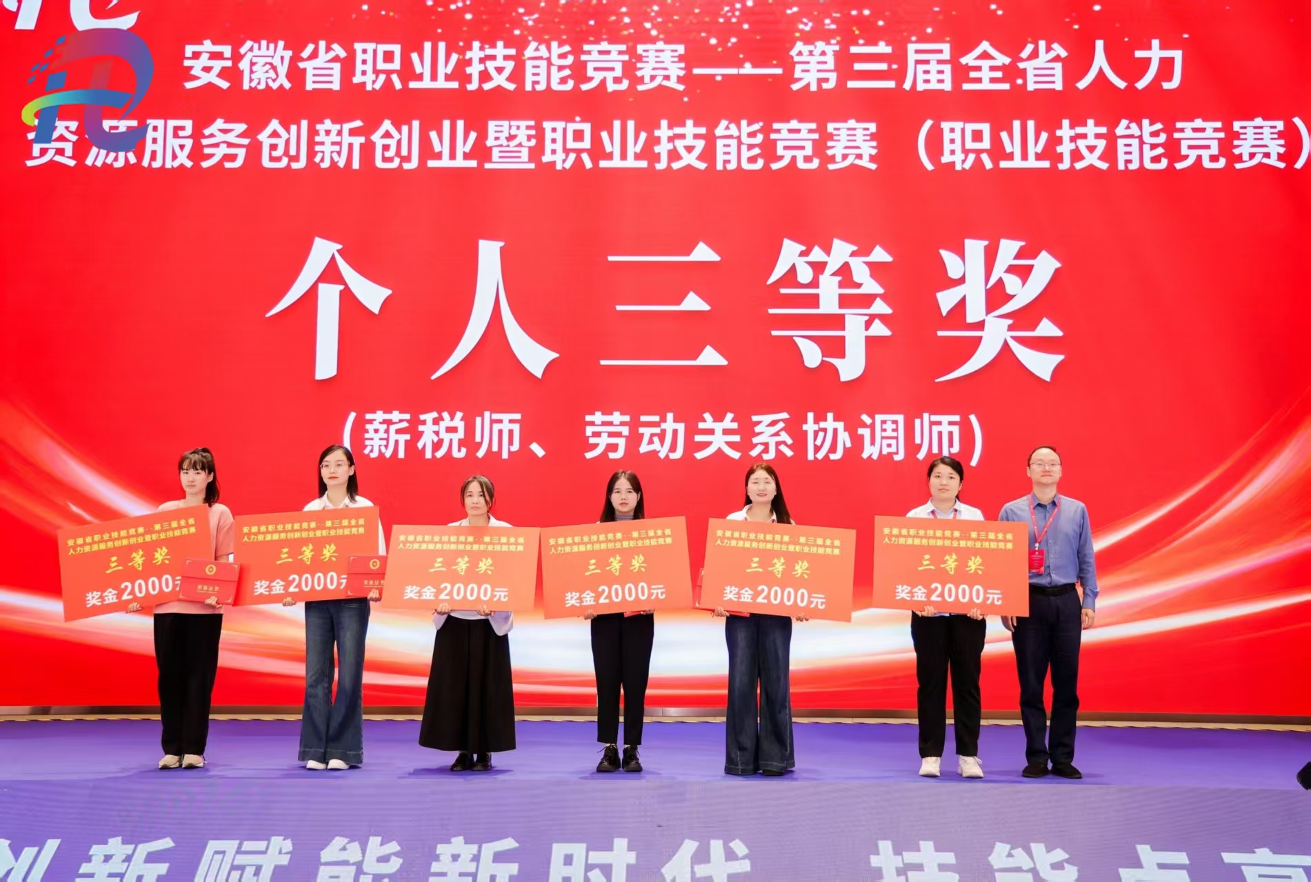 為進一步提升專業人才技能水平,強化人才支撐,推動財務、人事管理工作提質增效,集團公司積極響應淮南市人社局號召,組織財務、人事業務人員于9月25日赴合肥市參加第三屆安徽省人力資源服務創新創業暨職業技能競賽,并取得優異成績。其中,參加薪稅師比賽的張引鳳、俞微婷2人分別取得全省第4名、第12名的好成績,根據賽事規則,分獲安徽省三等獎和優勝獎。